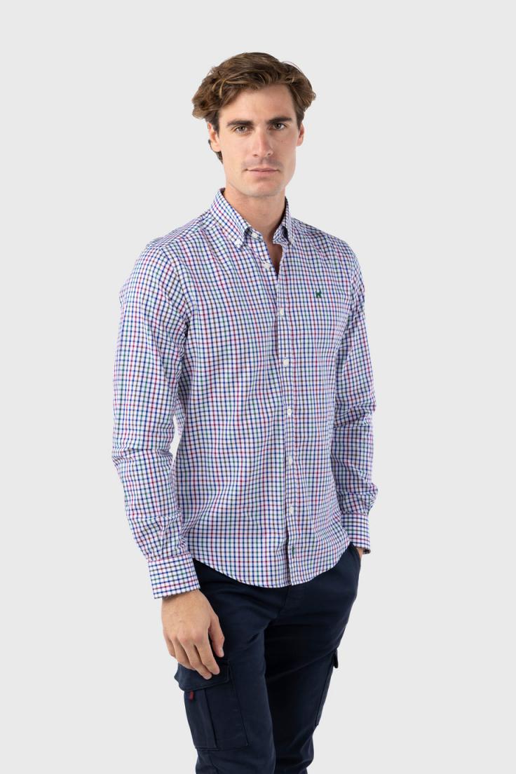 -Camisa de Cuadros en Tonos Marino, Verde Botella y Burdeos. -Patrón: Slim Fit -Confeccionada en 100% Algodón. -Cuello Tipo Button Down. -Bordado Logo Frontal. -Bordado «Williot» Delantero y trasero.